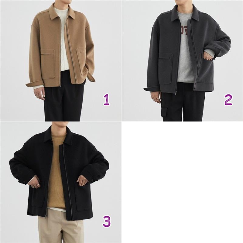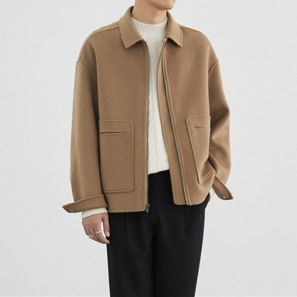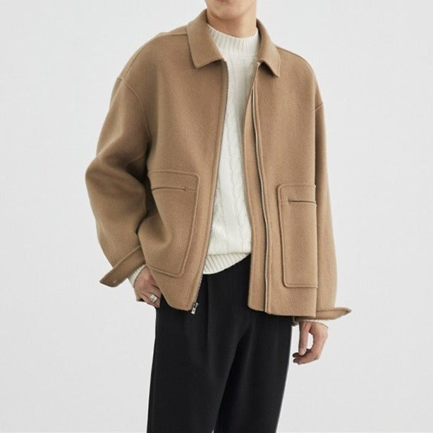 シンプルで上品なデザインが特徴のウールブルゾン。ベージュカラーが柔らかく落ち着いた印象を与え、クラシックかつモダンな雰囲気を演出します。