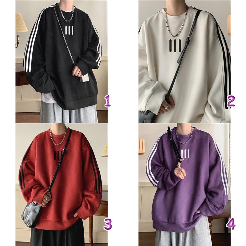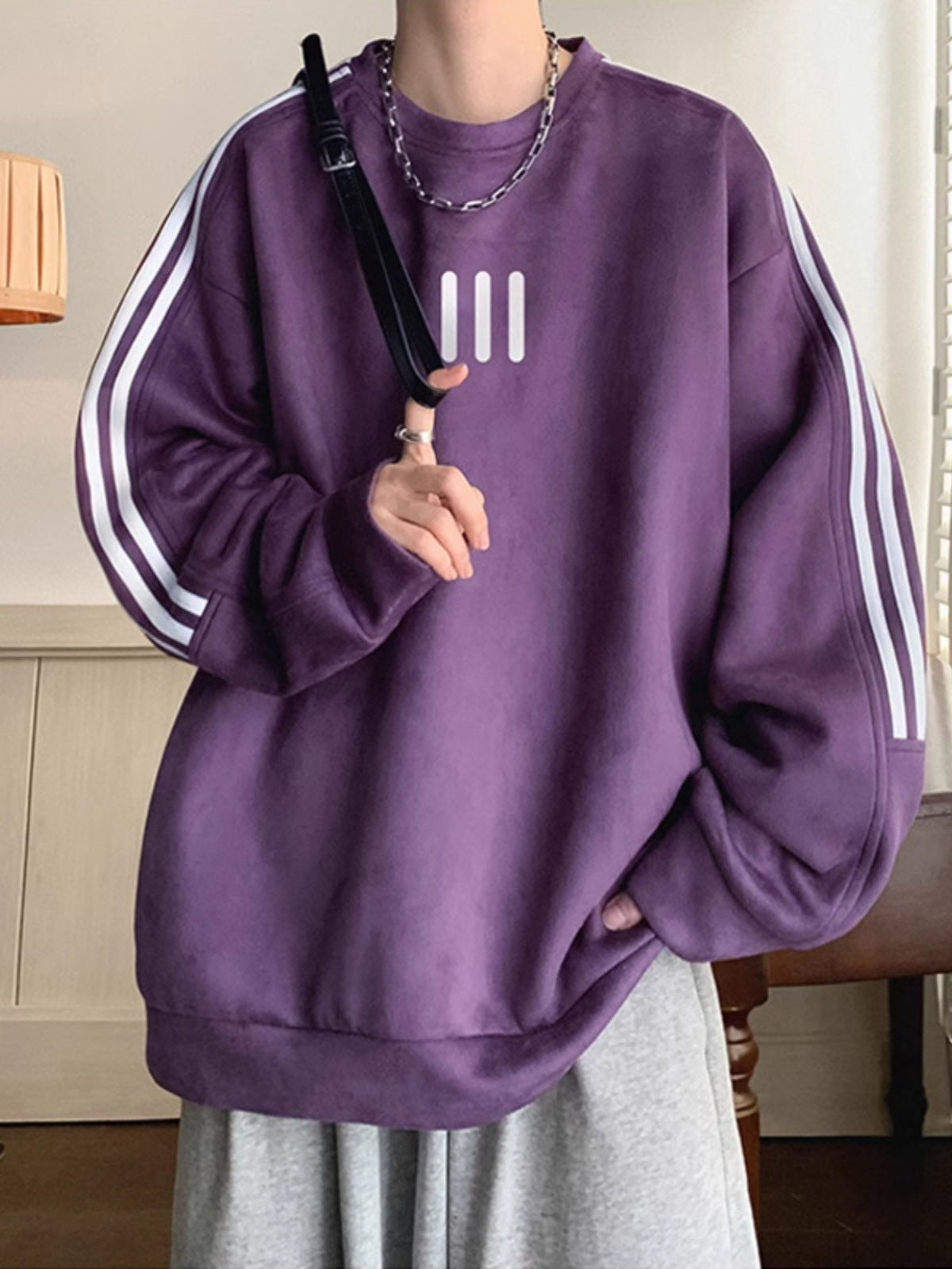袖の3本ラインがスポーティさを加え、シンプルながらも存在感のあるスタイルに仕上がります。