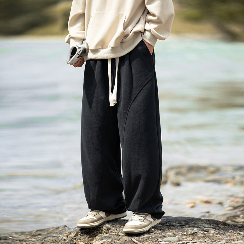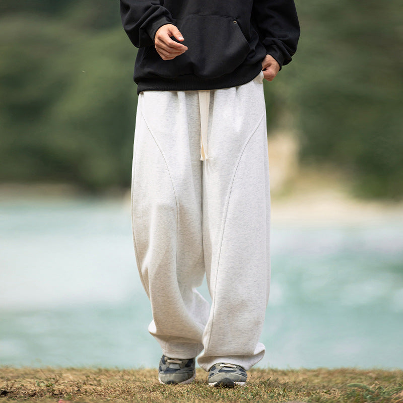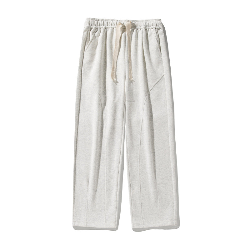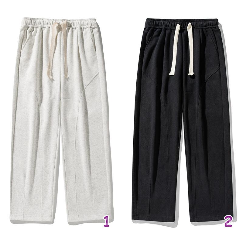 ウエストはドローコード付きのゴム仕様で、着脱がしやすくサイズ調整も容易。柔らかいスウェット素材で、長時間の着用でも疲れにくい快適さが魅力です。 -