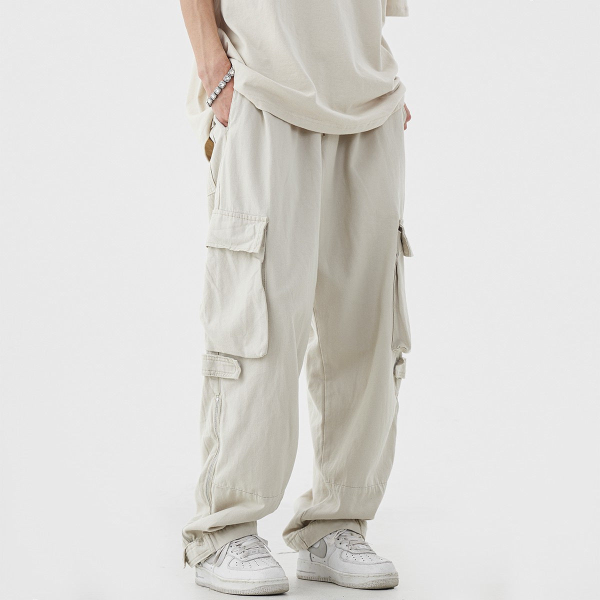 ストリートスタイルにぴったりなカーゴパンツ。落ち着いた雰囲気を演出し、様々なコーディネートにマッチします。両サイドには大きめのポケットが配置されており、機能性とデザイン性を両立した一本です。 -